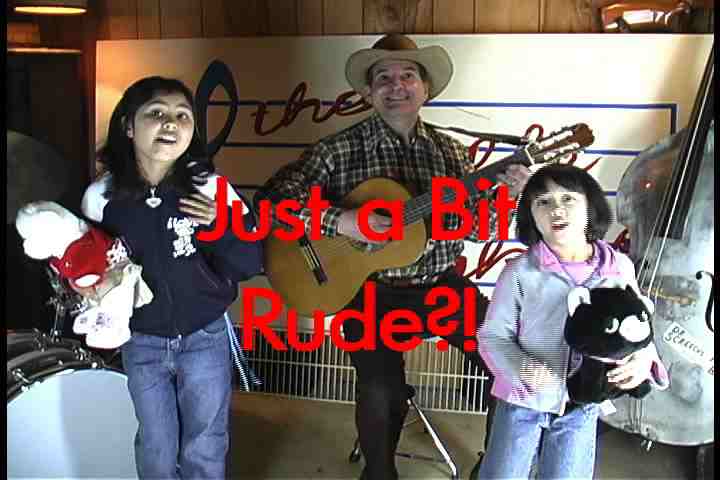 Just a Bit Rude!? MP3 Begins: "Don't ya think it's just a bit rude to God -- tellin' him you really can't know if He exists -- and if He still means the stuff the Bible says He said long ago? You've been to school! You think you're smart! You can run computers! Your car will start! But you don't have time to figure out if there's a God smart enough to talk!" Instrumentation: Drums, bass, guitar, trumpet by Dave Leach. Vocals by Dave Leach, Rachel and Sara Baratta.