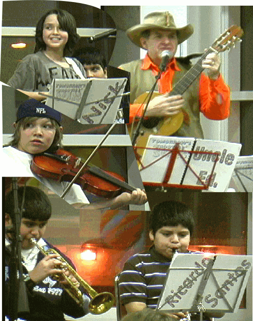2000-2002 band: Bonnie (flute), Chelsea (clarinet), Cliff (tenor sax), and Kris (trumpet) Thompson; Rob (drums, keyboard) & Wanda (trumpet) Gaither & Zech Scott (viola); Elden Riesetter (bass); Jessica Thomas (flute); Melissa Smith (violin); James Ware (drums); Robert Adams IV (violin, baritone).